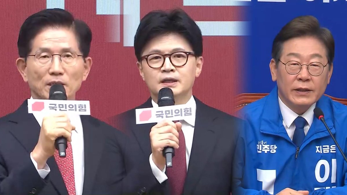 국민의 힘은 오늘 경선 결과를 발표하며, 안철수·홍준표 후보는 탈락했다고 밝혔습니다. 김문수 후보는 “반드시 이재명 후보를 꺾고 자유민주주의를 지키겠다”고 다짐했고, 한동훈 후보는 “서서 죽겠다는 각오로 싸워서 이기겠다”고 밝혔습니다.