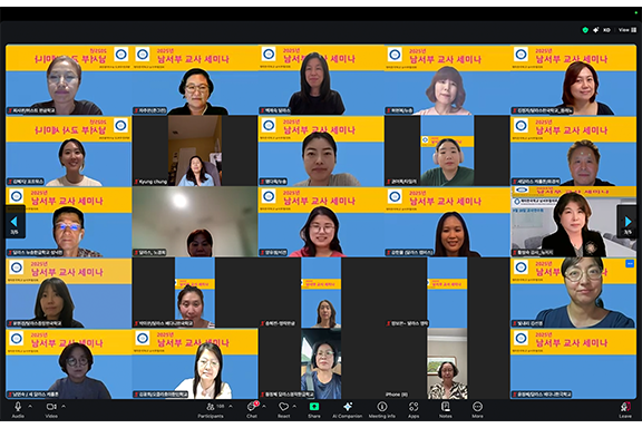 재미한국학교 남서부 협의회(회장 류인숙)는 지난 9 20일 토요일 오후 7시부터 10시까지 온라인 줌(Zoom)을 통해 2025 교사 세미나를 성공적으로 개최했다. 이번 세미나에는 20개 한글학교와 130여 명의 교사들이 참여해 한국어 교육의 현안을 나누고 교육 역량 강화를 위한 시간을 가졌다.