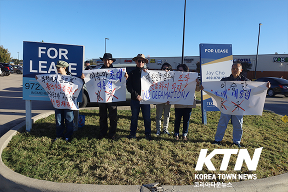 한편 이날 행사장 앞 주차장에서는 민주시민행동 회원외 한인 동포 6명이 “대한민국 정부에 조작 선동하지 마라!”등의 피켓을 들고 시위를 벌였으며 이와 관련 만약의 사태에 대비해 경찰들이 행사가 끝날 때까지 행사장 주변에 배치되기도 했다.