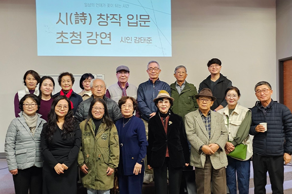김소월, 윤동주, 서정주의 대표작을 예로 들며 명시가 오래 살아남는 이유를 설명한 감 시인은 “일상의 틀을 벗어나 자신만의 언어로 세계를 바라볼 때 시는 살아난다”며 꾸준한 창작을 당부했다. 이번 강연은 시를 처음 접하는 이들에게는 용기를, 기존 문인들에게는 언어를 다시 돌아보는 계기가 됐다.