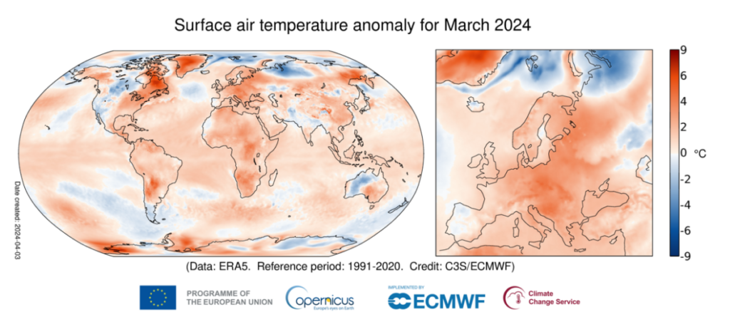 지난 3월 지구 표면온도가 역대 최고 기록을 경신했다고 유럽연합(EU) 산하 ‘코페르니쿠스기후변화서비스'(C3S)가 9일 밝혔습니다. C3S가 이날 공개한 ‘5세대 국제 기후대기 재분석'(ERA5) 데이터에 따르면 3월 평균 기온은 14.14도로, 이전 최고치인 2016년 3월보다 0.1도 높았고 산업화 이전 시기(1850∼1900년)의 3월 평균 추정치에 비하면1.68도 높았습니다. 이로써 지구평균 기온은 10개월 연속 각달 기준 사상 최고치를 경신했습니다. 엘니뇨는 적도 태평양 동부에서 계속 약해졌지만, 전반적인 해양 기온은 비정상적으로 높은 수준을 유지하였습니다. 극지방을 제외한 해수면의3월 온도는 21.07도로 역시 3월 기준 최고였습니다. 이 같은 최고 기온 경신 행진은 학계에서 기후변화가 새로운 단계로 접어들 수 있다는 우려를 낳고 있습니다. 미국항공우주국(NASA)의 고다드 우주연구소 개빈 슈미트 소장은 “8월까지 이상현상이 안정되지 않으면 지구는 미지의 영역에 들어갈 것”이라며 “이는 따듯해진 지구가 과학자들이 예상했던 것보다 훨씬 빨리, 이미 근본적으로 기후체계 운영 방식을 바꾸고 있음을 의미할 수 있다”고 분석했습니다. Copyright ⓒ 달라스 코리안 라디오 www.dalkora.com [무단 전재 및 재배포 금지]