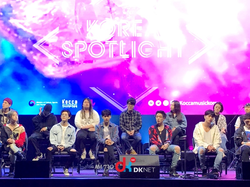 올해 korea spotlight 행사엔 보이그룹 아이콘, 가수 청하, 힙합 그룹 XXX(엑스엑스엑스) 이외에 포스트록 밴드 잠비나이, EDM 뮤지션 히치하이커, 전자 음악가 키라라 등 6팀이 참여했습니다.